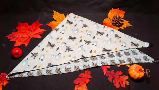 Foulard double face loup / loup et manchot