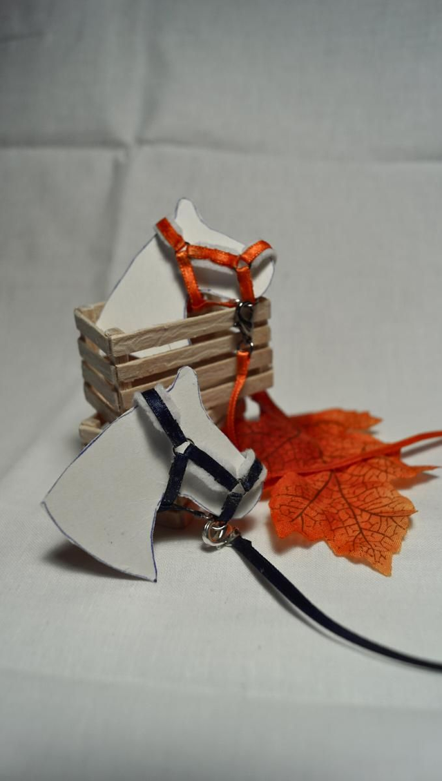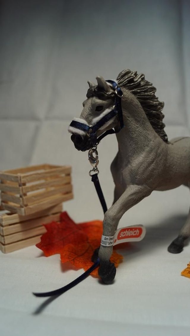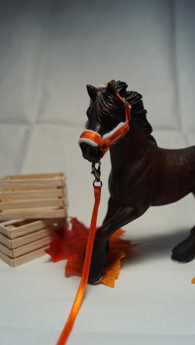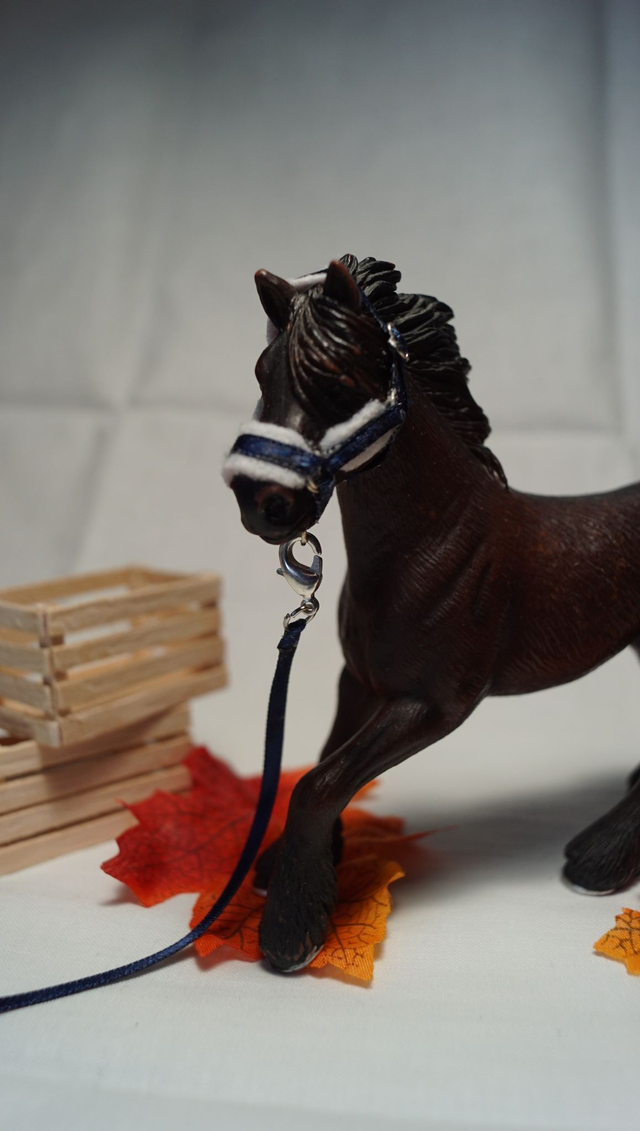 Chaque ensemble est réalisé à la main avec soin : ruban solide pour le licol et la longe, anneaux métalliques pour un rendu réaliste et durable. Idéal pour compléter une écurie miniature, enrichir une collection ou mettre en scène vos figurines.